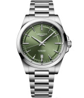 Диаметр: 43 мм. Калибр: L157. Индикация даты. Сапфировое стекло с антибликовым покрытием. Завинчивающаяся заводная головка. Закручивающаяся задняя крышка корпуса. Часовая шкала: Накладные арабские цифры и метки. Стрелки: посеребренные, полированные с покрытием Super-LumiNova. Черный циферблат. Браслет: нержавеющая сталь. Тройная застежка с системой блокировки и кнопкой. Международная гарантия 2 года.